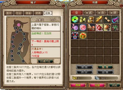 这一系统贴合了中国传统武侠文化中对于经脉的推崇与贴合。玩家们可以通过打通全身的穴位及任督二脉来获得能力的巨大提升,可谓是一个经典的设定。