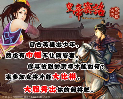 自古英雄出少年,然也有巾帼不让须眉者。你寻访到的武将才能如何?来参加女将才能大比拼,大胆秀出你的部将吧。