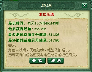 历练系统这个是算比较特色的系统,这套系统是让玩家下线了还能继续保持升级状态。