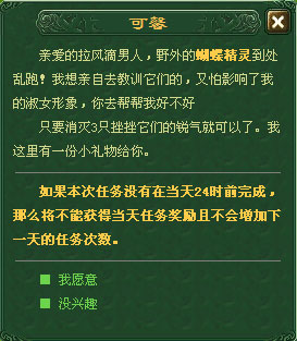 再未接取该任务时,每次打开对话所看到的任务内容是不一样的哦。因此玩家可以自由选择自己喜欢的任务内容,反正奖励是少不了的。