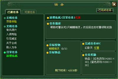 即轻松又简单,任务完成的奖励为红色药剂(+200)X30、蓝色药剂(+200)X30。
