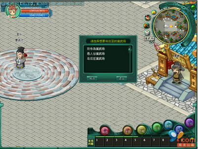 与小游戏一样,演武场也有快捷传送按钮,不用你主动跑到演武场中去,系统会将你自动传送到所选择的演武场中。