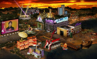 漂亮的娱乐都市,那巨大的蛋真是抢眼啊。吉他键盘组合的房子,太有感觉了