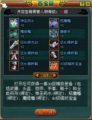 新版新人礼,从1.6正式开放开始,所有新注册的用户都将在进入游戏之后获赠由系统提供的“镇妖宝盒”一个!从10级开始,玩家可以通过使用“镇妖宝盒”获得对应等级的极品装备、RMB道具和下个等级的“镇妖宝盒”一个。以此类推,每10级为一个阶段,镇妖宝盒**藏有Lv10、Lv20、Lv30、Lv40、Lv50五个阶段的极品装备道具!