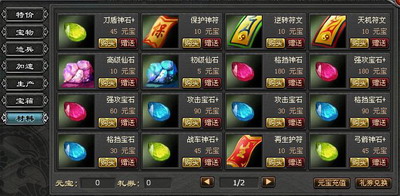 最后来说说新版本的商城的变化,新商城增加了更多的使用道具,比如:VIP道具、归元丹、高级归元丹等。另外,商城增加一个材料板块,这也是变化最大的版块之一,里面包含了所有锻造装备材料以及增加兵种暴击、攻击、防御等一切材料!所有的材料价格定价超低,适合大众化消费!还有的就是大家注意下,以前商城的商品只有“购买”二字,新版本中在购买的旁边增加了“赠送”二字。我相信大家知道这个应该是个什么样的功能了吧!