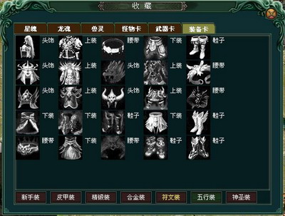 装备卡套装分类一览表: