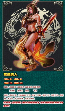 祝融夫人倾城绝色,且武艺高强,人称“刺美人”,兼有火神血脉,实为惊采绝艳之将!