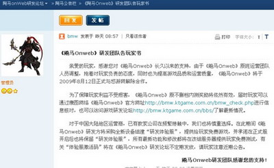 近来在网上传出,因悠游网原班运营团队人员调整,《飚马Onweb》研发商——上海康图网络与原运营商悠游网将于8月12日结束原合作关系。