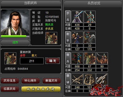 血量高的武将统帅火炮显然是不合适的,因为火炮最重要的任务是攻击、是伤害输出,他的血量应该低于重骑,才能够尽量减少其损失而获得最大的伤害输出量。因此这个兵种应该由计谋型武将统帅,才能发挥他的最大作用。至于重骑,他自然是需要血量高的武将统帅,让他成为坚固的肉盾,从而保护火炮的攻击。
