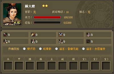 谣言:昏庸无能:减少对方城中武将的忠诚度10点