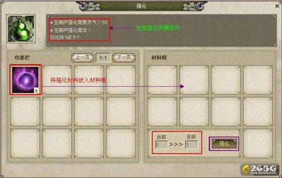 将所需的法宝材料放入材料框,然后点击“合成”,则会生成魂魄属性随机的“玉葫芦”。