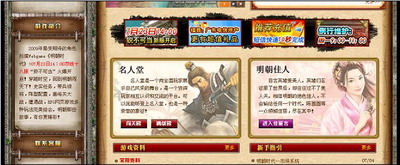 明朝时代名人堂将会首先推出两个殿:闯关殿、满级殿。每个入殿的玩家详细资料都将会摆放在明朝时代官网上面,同时还会拥有一个个人专题页面。各位殿主可以在自己专题页面摆放照片、个人资料、游戏截图等各种信息。