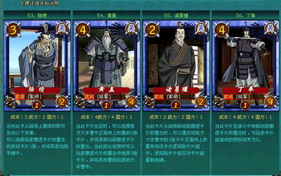 卡片是这个三国演义世界中的重中之重,它是一种杀敌不见血的武器。使用变化多样的卡片可以打败对方的武将。如攻击成功,则对方的牌组便会被削减。不断地重复攻击,当对方的牌组张数变为0时,你就获得最后的胜利。