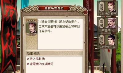 当整个江湖中都在为第一高手的诞生而拍手称赞的时候,《武侠风云》却并没有停止前进的步伐。竞技场可谓是一大亮点!纷扰江湖中,各位侠客之间自然免不了有些摩擦,或者私下里进行一下切磋。也有很多侠者们喜好比武,更愿意彼此间分出高下。而竞技场的出现,就为玩家们提供了这样一个非常好的场所和途径!浩瀚江湖,谁都不想做个无名小辈,竞技场让每个玩家都能以武排辈!