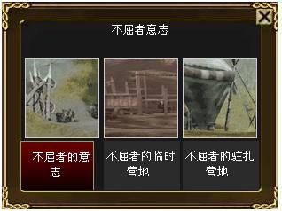 不屈者意志紧邻不屈者遥望南部的山脉。山脉将平原分割为两块世界,一边是人类势力的范围,另一边是“不屈者”的势力范围,他们使用悬在同族头上的剑,没有人知道下一次进攻何时开始。简陋的工事源于这片土地的主人不富裕式生活,但贫穷没有磨灭他们的意志,建立起不屈者的临时营地,苦难使他们铭记祖辈的屈辱。剑与魔法是这里的敲门石是山脉深处不屈者的驻扎营地,如果没有强大的力量便不要试图接近这里。