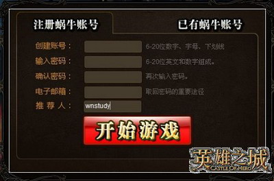 活动内容: 在活动期间,凡是新注册《英雄之城》的玩家,在注册页面 推荐人一栏中填入帐号“wnstudy”即可获取属于您的开学礼物。