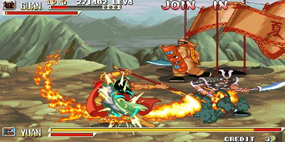 同样是上个世纪的产物,《三国战记》,街机版的三国经典。主角为五虎上将,简单流畅的操作系统,华丽多彩的法宝技能,丰富的游戏内容和无数尚未完全揭开的庞大隐藏路线,构成这款游戏长久不衰的魅力巨大。