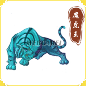名山大川里从来就不乏一些珍禽异兽,而壮硕的恶虎更是数不胜数。可是有一种恶虎却是出类拔萃的,那就是魔虎王。魔虎王的由来纯属巧合,多年前曾有一散仙在深山中潜心炼化法宝,终日八卦炉中的火焰飞腾不息,散仙就坐在八卦炉旁闭目养神。一只饥饿的恶虎凑巧来到了这个场所,毫不客气的将那没有防备的散仙咬死。就在恶虎享用美餐的时候,一个意外发生了。没有了散仙的坐镇,那八卦炉中的宝物缺少了灵气的来源,突然爆炸,炉中的神火将恶虎团团围住。在恶虎即将死亡的时刻,动物本身具有的灵气开始外溢,与那散仙未练成的法宝竟然产生了共鸣,二者巧合的融为一体,再加上八卦炉中神火的淬炼,魔虎王便降临了