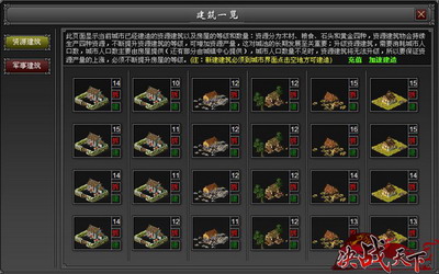 发展经济,当然离不开建筑。在《决战天下》中,建筑分为资源建筑和军事建筑。