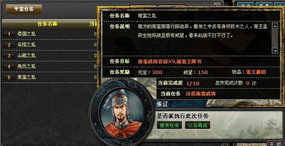 任务说明:南方的南蛮部落行踪诡异,据说之中多有身怀妖术之人,南王孟获生性好战且极有威望,看来此战不打不行了。