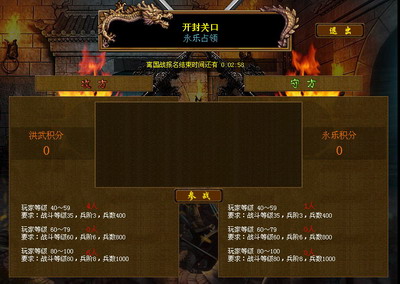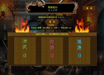3)截止到20点00分,当进攻方报名人数达到10个时,则形成战场,战场开启后点。