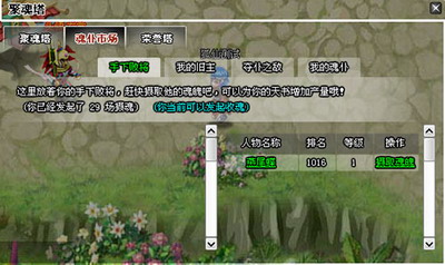 进入《狐仙》游戏的世界后,点击游戏界面右下角的“摄魂”按钮之后,即可打开“聚魂塔”的界面。