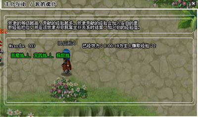 接下来,这位“魂仆”将能为你持续提供经验,还能为你的天书资源带来一定量的加成。同时你也可以对他进行蹂躏 或安抚,蹂躏和安抚的同时也能获得经验及金钱的奖励哦。