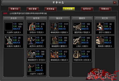 数值,又见数值。没有办法,要玩战争策略游戏就不能避免这些。想我读了那么多年的书,对于数学知识除了加减乘除外通通归还给了老师,还真有点惭愧。不过,由于《决战天下》中没有那种一个兵种打天下的情况,而是兵种之间环环相克,所以通过不断地积累经验,向高手们学习,如今的我已经不再害怕战争了。相反,在把握兵种相克的很多规则后,每每有了新的想法,我都乐此不疲的给武将们配上兵力,派出去狂打一通。迎了,证明我学会了新战术;输了,虽然心痛,但至少我知道这种策略行不通,以后不会再犯类似的错误。