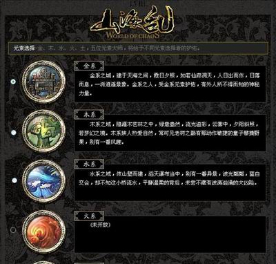 从元素选择上可以发现,游戏共设定了金、木、水、火、土五系城池,不过或许是由于目前游戏尚处于技术封测阶段,小编仅在登陆界面上看到金、木、水三系的选择。