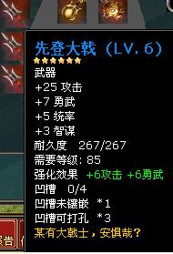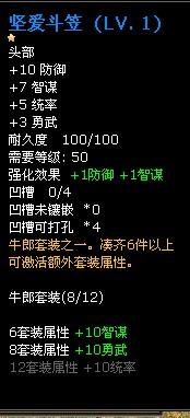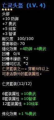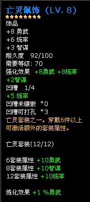 四、装备强化到7级,哈哈,装备就会得到更大的加强,就会出现既可以加勇武也能加统率还能加智谋的宝甲来。见8级亡灵配饰图。
