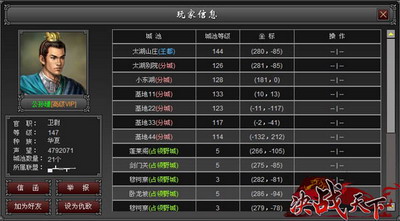 瑾:其实我进游戏时间比较晚,7月3号开区,我是5号下午开始玩的,只有比别人勤快点了。我刚进游戏什么都不懂,因为没玩过类似的游戏,只有慢慢摸索和兄弟们一起探讨。在4区我是第一个剿灭N8和N9的,第一次打N9我12将出动结果连战报都看不见。那时候真有点郁闷,我觉得一区蝶梦影都能剿灭我怎么就不能剿灭了,所以我接着发动了第二次攻击,第二次我就发觉我2波攻击已经消灭对方3队重骑了。紧接着连续3波攻击就剿灭了N9。