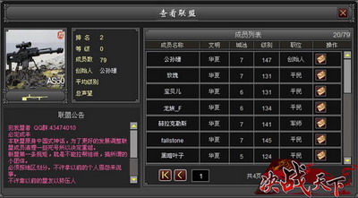 瑾:君泽不玩的时候联盟很乱,大家非推荐我做盟主不可,我其实有点点懒想推卸的,但经不住兄弟们的强力要求,所以创建了枪盟。