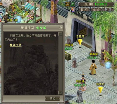 “注灵”是提升装备属性的一种新手段,玩家通过和指定npc(扬州城的何步城)对话,选择“装备注灵”选项,操作后即可得到系统赋予的任意提升装备属性的效果。