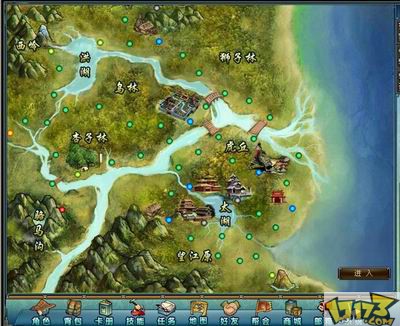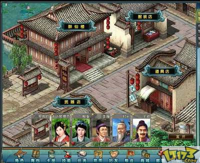 游戏中城镇的画面是江南的建筑风格。进入城镇以后我们可以看到建筑的头上都有标明名称,下方都是可以接任务的NPC方便玩家查找任务。
