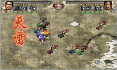 战斗伊始,刘备军就赶到空地上设置了一个军乐台,以便在战斗中可以回复技力,不想被张郃识破,一把火烧毁了军乐台。