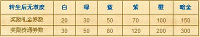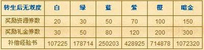 另外,根据更新前已经转生的武将,系统将给予以下奖励。