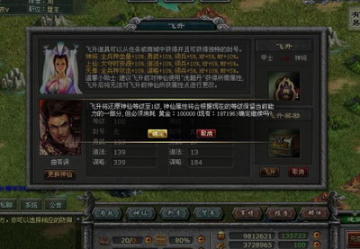 选择飞升之后将会被要求付出10万的黄金。小CASE了吧!点击就可完成飞升。