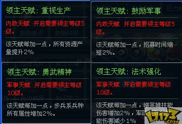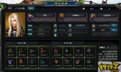 游戏中的玩家,可以在领主信息中看到角色的等属性技能,同事修炼高等经济天赋和军事天赋,对玩家的城市和资源有很大的提升,当然这都是有等级限制。