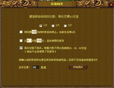 诛仙阵(一般)-40关-每天准入三次,使用10元宝可以增加1次进入次数