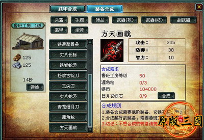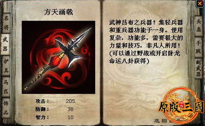 在《原版三国》中,方天画戟作为三国第一神兵,自然珍贵非常。200+的攻击力,让敌人望尘莫及。方天画戟作为稀有极品,在商店里是买不到的,之后通过鲁班工房进行打造或者参加游戏活动获得。,那么你就能立即打造个性十足的全新英雄人物!