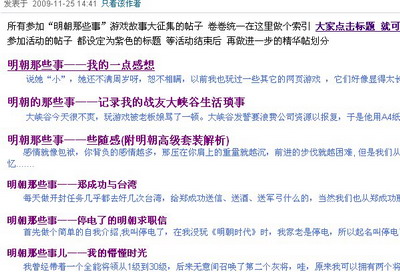 1、 文章以发帖形式,发布在游戏论坛经验交流区。帖子命名规则为:明朝那些事--+你的文章标题。 帖子末尾署名为:区+角色。