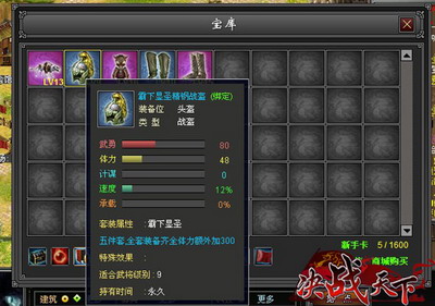 不过,正如“好马配好鞍”的说法一样,要让我们的武将成为高手中的高手,装备也是不可缺少的。各种装备不但要有,而且要好,套装的加成属性、不同属性所追求的不同效果,作为一国之君的你不了解,又怎么能要求你的武将做出傲人成绩呢?