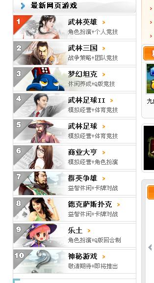 随着具有对国内互联网文化产业跨行合作有重大意义的《三国演义之群英争雄》新品发布会的推出,09年年末的惊喜连连爆来,打破网页市场跨平台对战的《武林英雄》首创推出横跨国内外平台的武林大会,将冬日的热情之火熊熊燃起,打造了互联网游戏互通的神话。而踏入09年的最后一个月,九维网这个为用户提供精品游戏、社区交友娱乐的虚拟平台,进行了精心雅致的改版。我们不难看到,在九维网最新网页游戏列表中,正有一款神秘游戏即将登场。