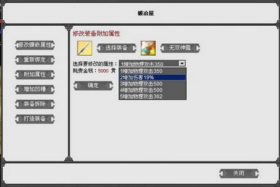 可以选择修改装备的第几个附加属性,修改所装备附加属性=准备修改的装备+无双神露+金钱,效果范围仍然在装备品质范围内。