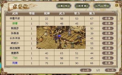 在全新的版本中,全新改版的“武将系统”无疑是最大的亮点。武将是所在部队的领导者,武将的领导可以极大的影响战争的结果。武将也可以是守卫城池的精兵悍将,保卫你的大本营不受外敌侵袭。武将的产生,可以是通过将军府招募,也可以是攻打名称后的俘虏。