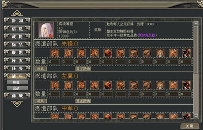 会战系统是一个基于联盟的,只在每周的固定时间里开启的团队战役。参与会战的玩家将与联盟的同伴一同挑战敌势力的史实将领,如鳌拜、左良玉、刘汝魁等等。会战需要5名联盟内玩家一起协同作战,在会战开始之前的任何时间联盟内玩家都可以派遣兵力到团队战役中,但是每人只能派遣一只部队进入会战,并且该玩家也只能参与一场会战。参与会战的部队内必须拥有将领,在会战未开始之前,联盟盟主可以任意撤除盟内玩家已经派遣的任何部队。参与会战的5名玩家有五个部队位置可以选择:先锋、左翼、中军、右翼、卫军。不同的位置所遇到的兵力也不一样,难度也各不相同。会战系统十分讲究协作性,只有搭配得当的团队才能在会战中取得胜利。 会战结束后成功击杀BOSS获胜的联盟将会获得稀有的极品装备奖励。