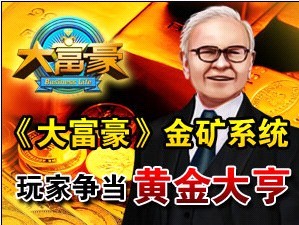 《大富豪》开放金矿系统。地图上空地隐藏了许多金矿,金矿为9格空地!是金矿的地皮,只要玩家勘察为有金矿,就显示为玩家XX的金矿。金矿有不同的品质,品质决定了金矿的衰减期长短以及每天可开采的黄金产量上限;品质分为优、中、差;金矿衰减期从开采之日开始计算。开采的黄金不仅是身份的象征,更是建造国家奇迹的必需品。