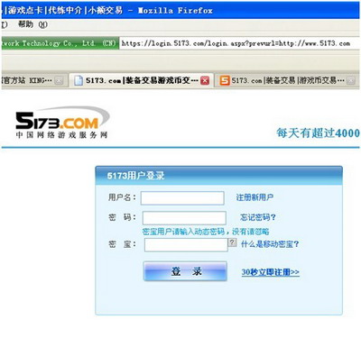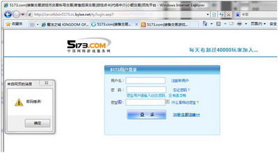 GM打开此人给的链接地址。看似是5173的登陆页面。可是大家仔细跟下方真正的页面对比就知道了。这个完全是他们用来等着你输入密码后盗取帐号用的。