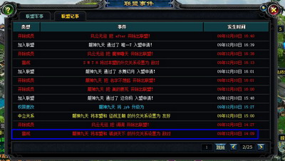 在砺剑天下将中国龙族的外交关系设为敌对后,后者即刻回应了宣战,下图为中国龙族联盟的宣战记录。