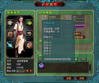 突破了策略类游戏的对战体验,玩家在游戏过程中需要注意对护法的配点,根骨、内功、武功、身法、内力相应的就是不同的气血、攻击、连击、暴击、武功发动,在战斗中的策略也完全不同,结合玩家的战术、相应的装备配置、炼制的不同武功自是有无穷乐趣。